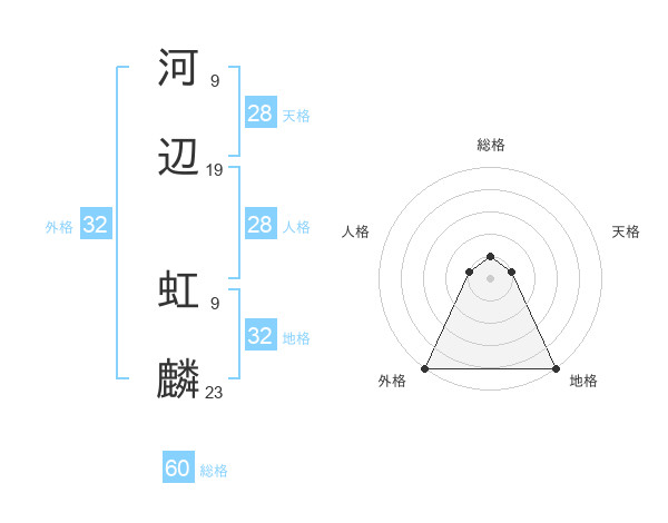 河辺 虹麟さんの外格は32画の5点!