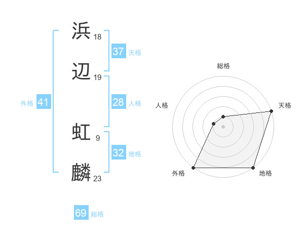 浜辺 虹麟さんを姓名の画数から五運を鑑定