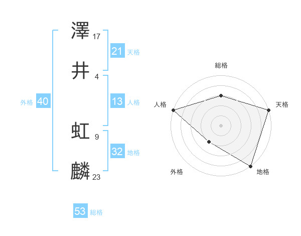 澤井 虹麟さんの天格は21画の5点!