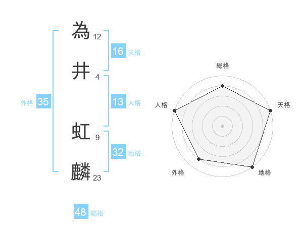 為井 虹麟さんの総格は48画の4点!