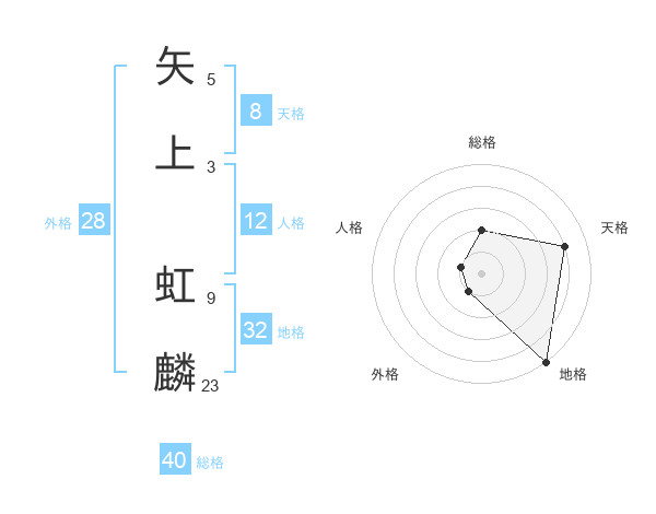 矢上 虹麟さんを姓名の画数から五運を鑑定