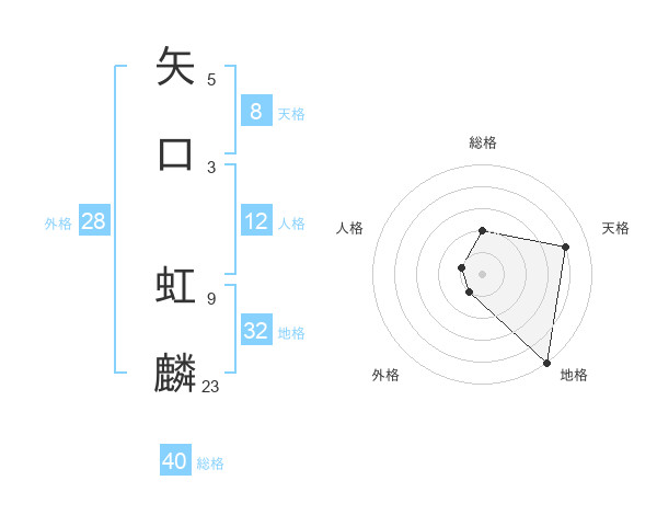 矢口 虹麟さんの総格は40画の2点!