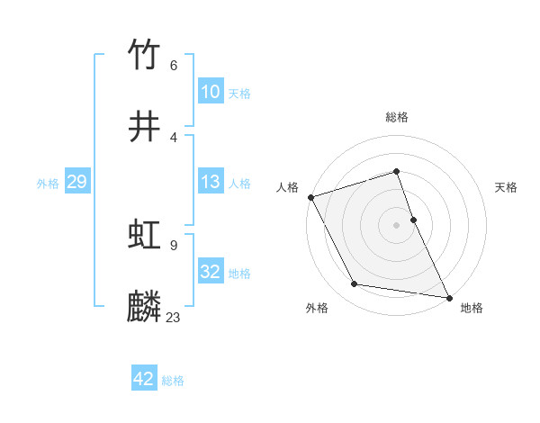 竹井 虹麟さんの総格は42画の3点!