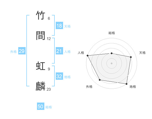 竹間 虹麟さんを姓名の画数から五運を鑑定