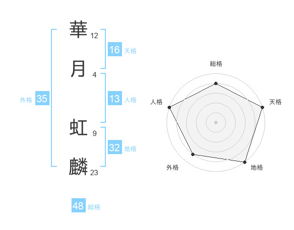 華月 虹麟さんの外格は35画の4点!