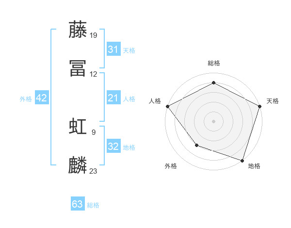 藤冨 虹麟さんの総格は63画の4点!