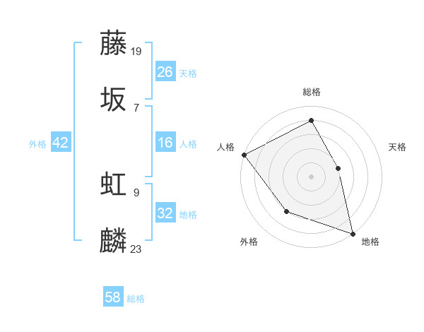 藤坂 虹麟さんを姓名の画数から五運を鑑定
