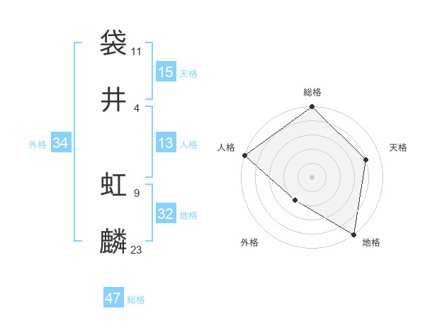 袋井 虹麟さんを姓名の画数から五運を鑑定