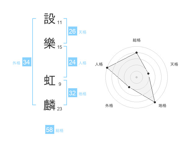 設樂 虹麟さんの総格は58画の4点!