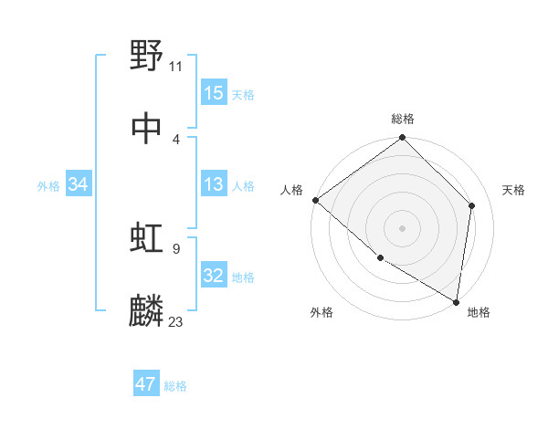野中 虹麟さんの総格は47画の5点!