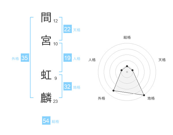 間宮 虹麟さんの総格は54画の1点!