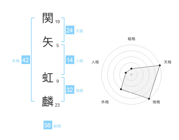 関矢 虹麟さんの天格は24画の5点!