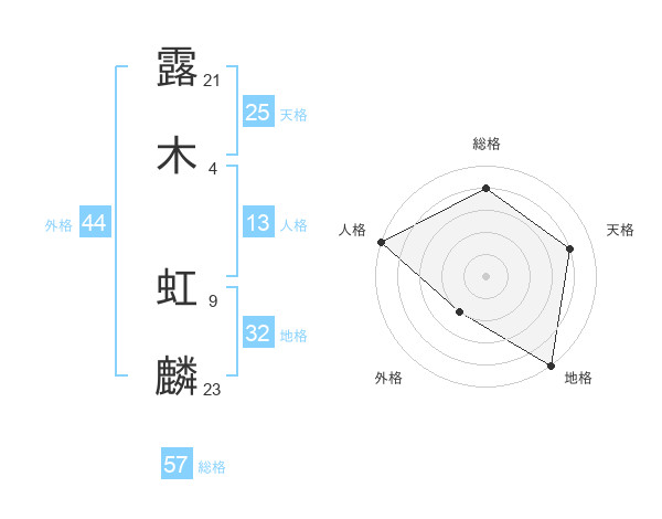 露木 虹麟さんの総格は57画の4点!