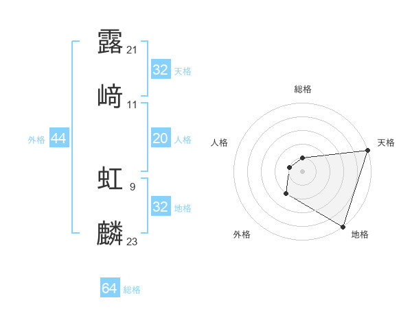 露﨑 虹麟さんを姓名の画数から五運を鑑定