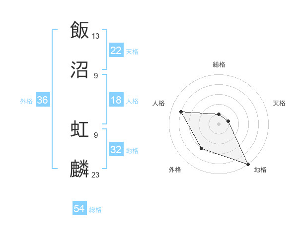 飯沼 虹麟さんを姓名の画数から五運を鑑定