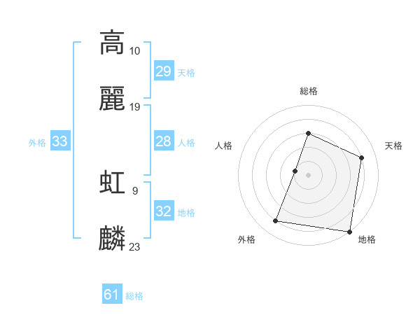 高麗 虹麟さんを姓名の画数から五運を鑑定