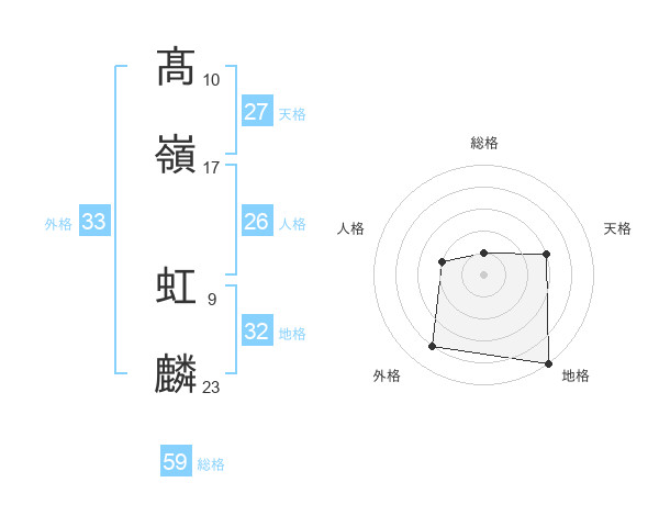 髙嶺 虹麟さんの総格は59画の1点!