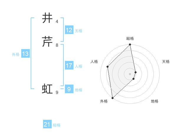 井芹 虹さんの総格は21画の5点!