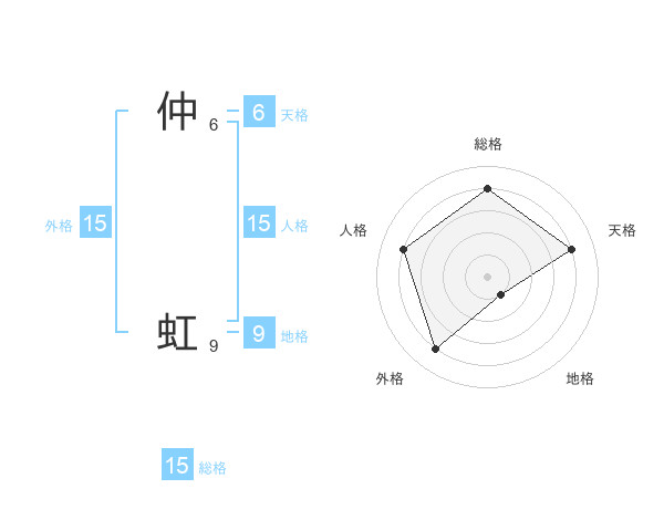 仲 虹さんの総格は15画の4点!