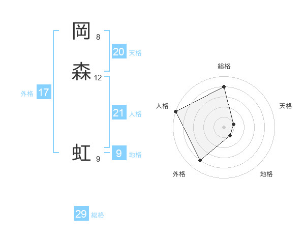 岡森 虹さんの人格は21画の5点!