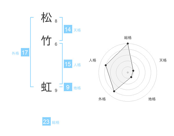 松竹 虹さんの総格は23画の5点!
