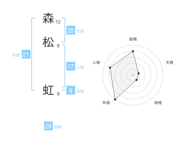 森松 虹さんの総格は29画の4点!