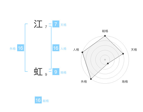 江 虹さんの総格は16画の5点!