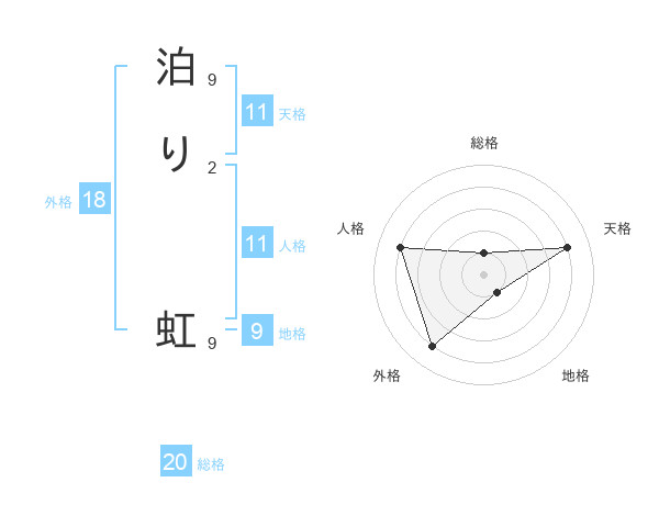 泊り 虹さんの総格は20画の1点!
