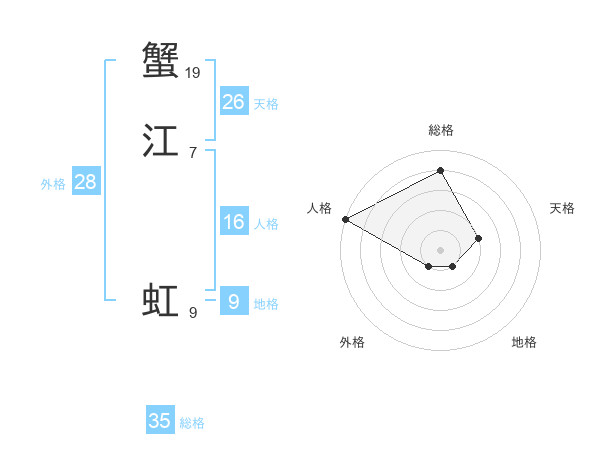 蟹江 虹さんの総格は35画の4点!