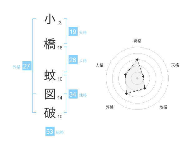 小橋 蚊図破さんの総格は53画の3点!