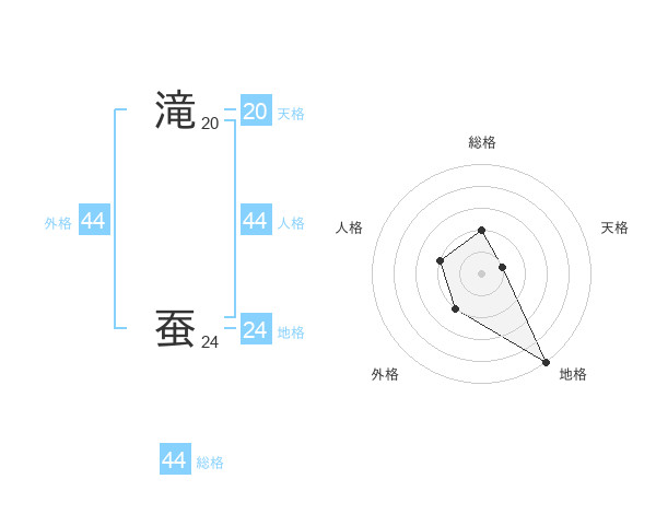 滝 蚕さんの総格は44画の2点!