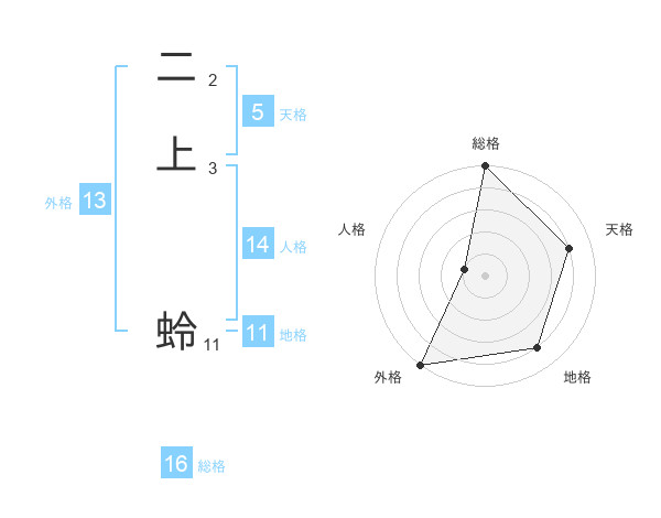 二上 蛉さんの外格は13画の5点!