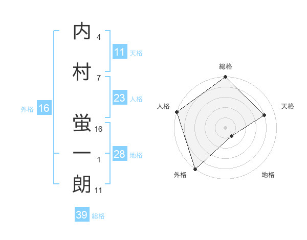 内村 蛍一朗さんを姓名の画数から五運を鑑定