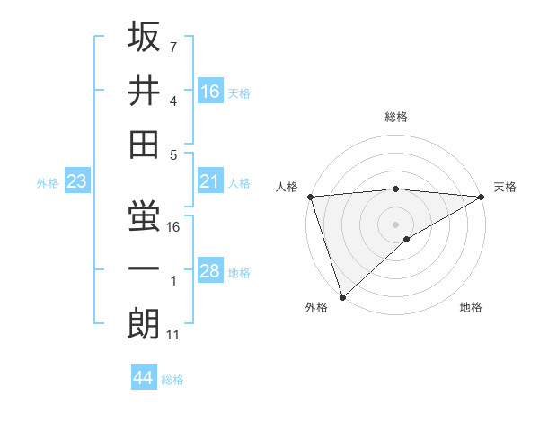 坂井田 蛍一朗さんを姓名の画数から五運を鑑定