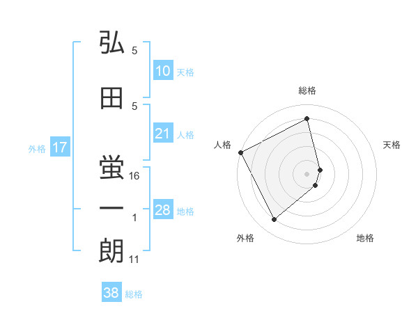 弘田 蛍一朗さんを姓名の画数から五運を鑑定