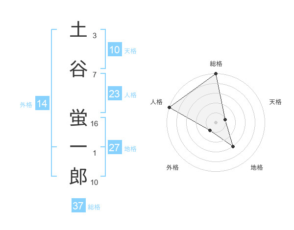 土谷 蛍一郎さんを姓名の画数から五運を鑑定