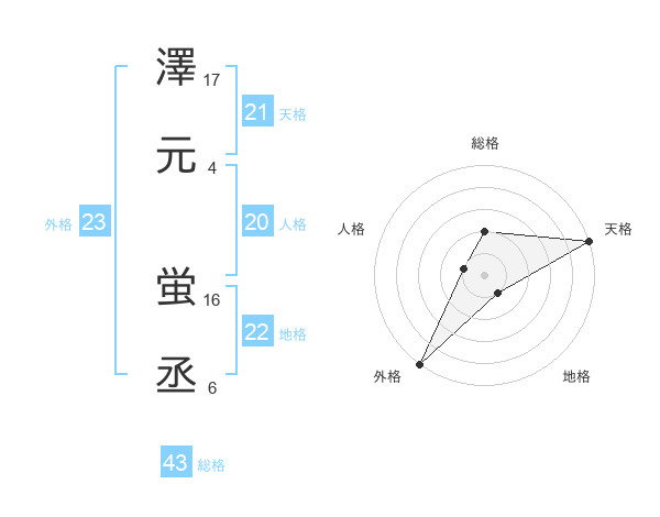 澤元 蛍丞さんの外格は23画の5点!