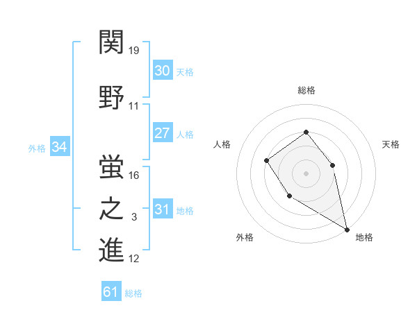 関野 蛍之進さんを姓名の画数から五運を鑑定