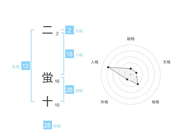 二 蛍十さんの総格は28画の1点!