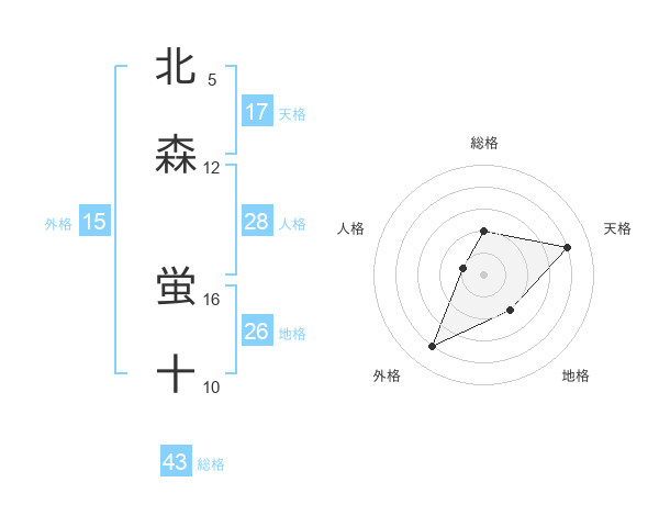 北森 蛍十さんの天格は17画の4点!