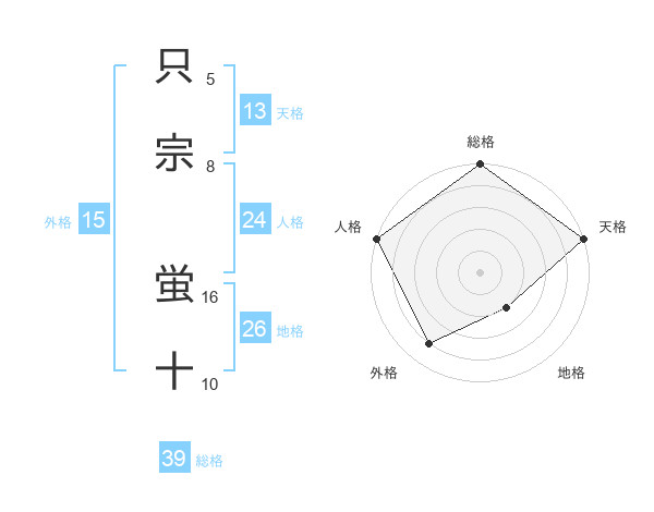 只宗 蛍十さんの総格は39画の5点!