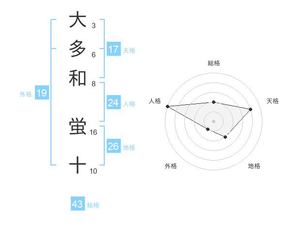 大多和 蛍十さんを姓名の画数から五運を鑑定
