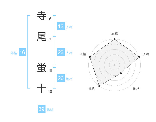 寺尾 蛍十さんの総格は39画の5点!