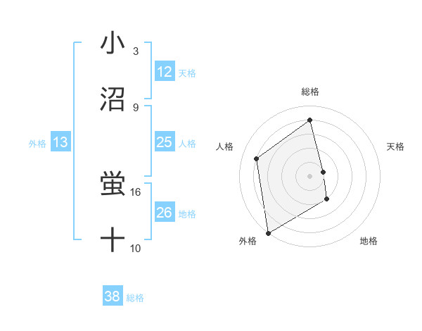小沼 蛍十さんを姓名の画数から五運を鑑定