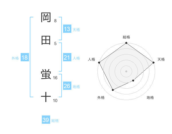 岡田 蛍十さんを姓名の画数から五運を鑑定