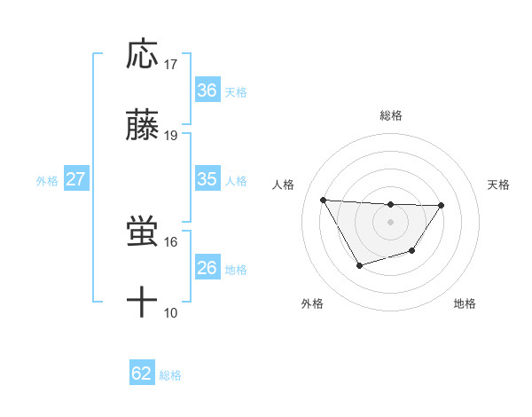 応藤 蛍十さんの天格は36画の3点!