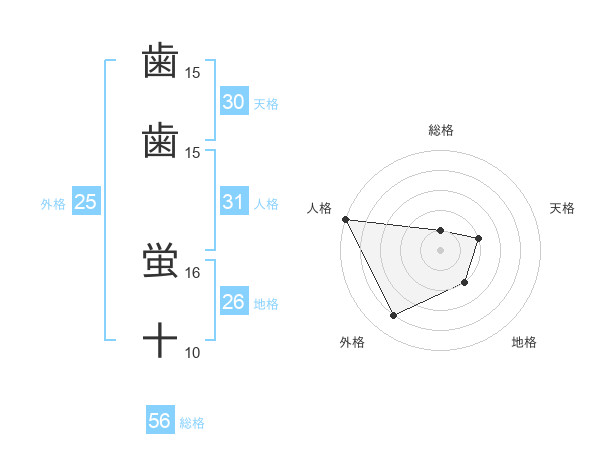 歯歯 蛍十さんを姓名の画数から五運を鑑定