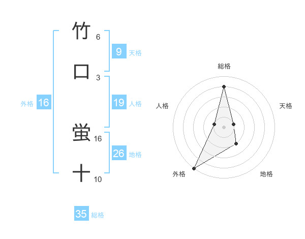 竹口 蛍十さんの総格は35画の4点!