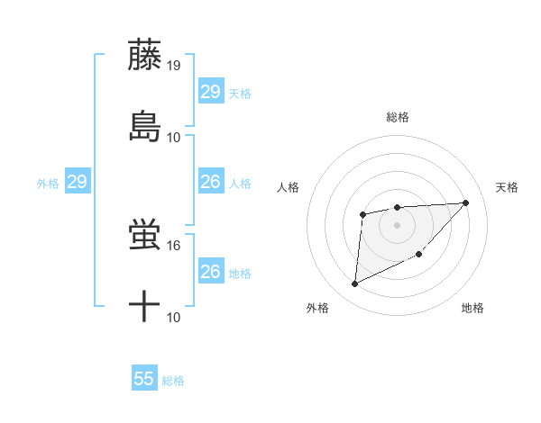 藤島 蛍十さんを姓名の画数から五運を鑑定