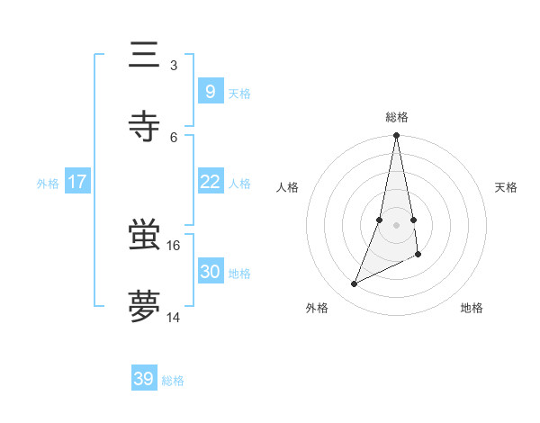 三寺 蛍夢さんの総格は39画の5点!